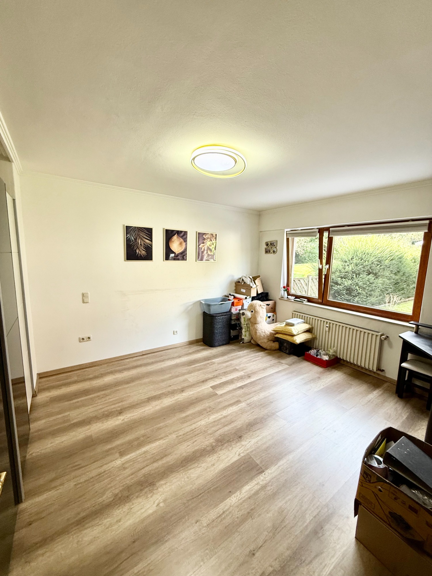 Weitere Komfortmerkmale wie elektrische Rollläden und große Fensterflächen, die für viel Tageslicht sorgen, runden das attraktive Gesamtbild dieser Wohnung ab. Zusätzlich befindet sich im Flur ein zentraler Schalter, über den sich sämtliche Rollläden der Wohnung gleichzeitig hoch- und herunterfahren lassen. Ein weiterer Schalter ermöglicht es, mit einem Tastendruck das gesamte Licht in der Wohnung auszuschalten.