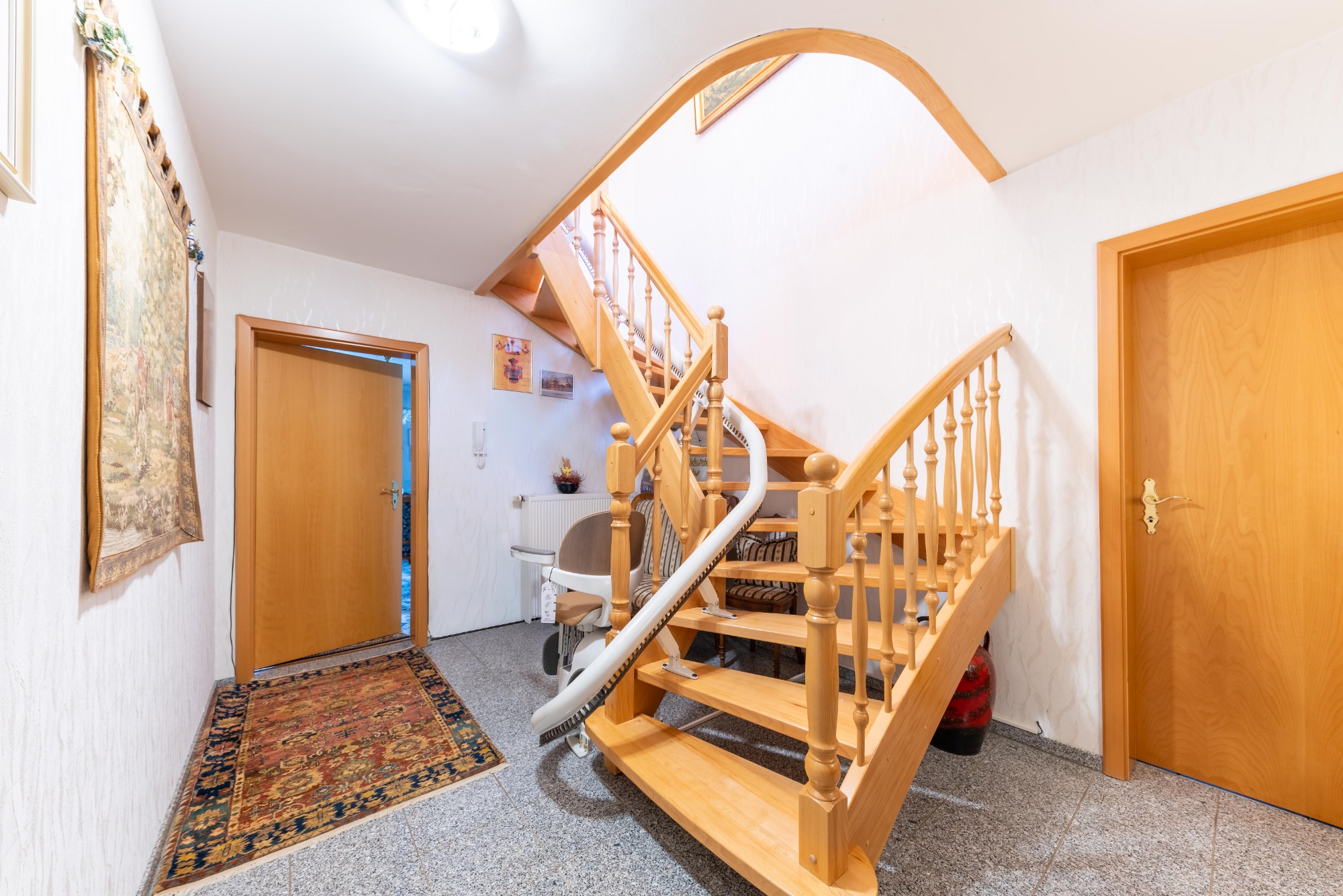 / Treppenhaus mit Sitzlift für komfortables Erreichen aller Etagen