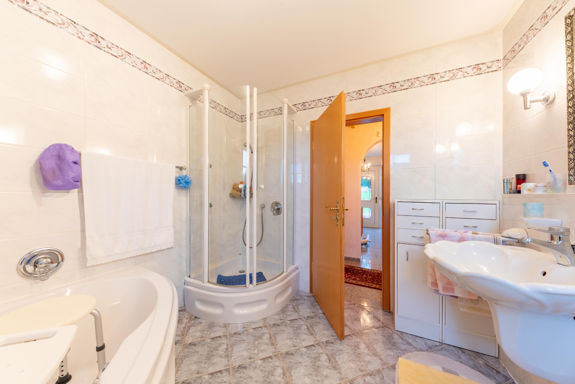 / Großes Badezimmer mit Badewanne und separater Dusche